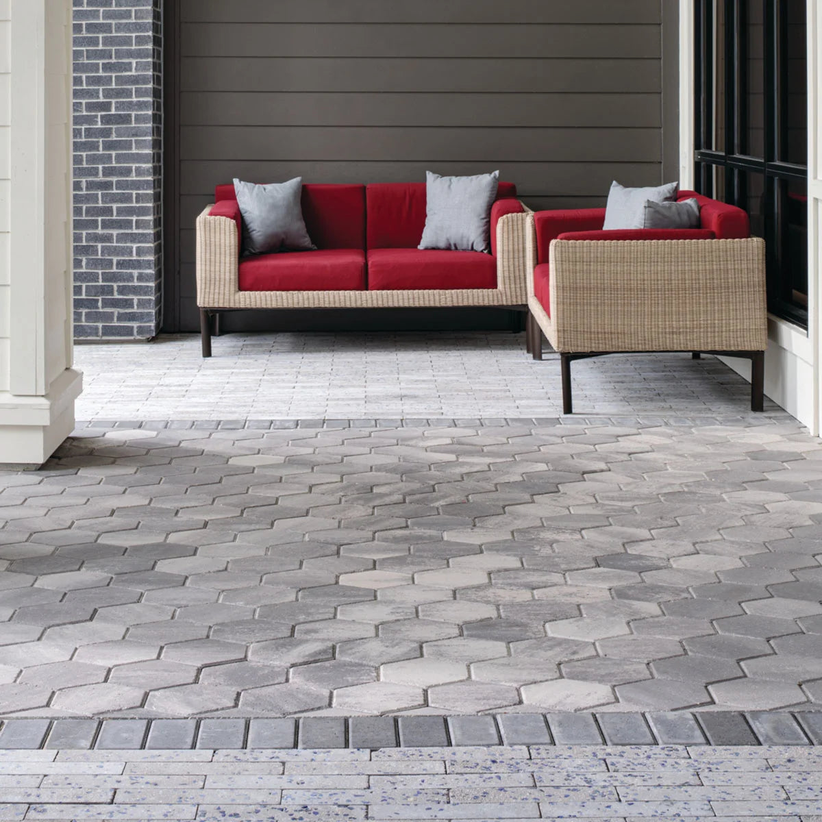 Hexagon pavers can be used alone or easily combined with Origins™ or Dimensions™ paver lines to add visually interesting borders, accents or inlays.